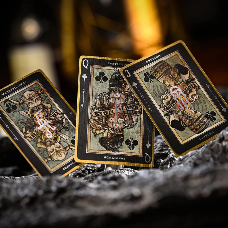 Üretici: Cartamundi Malzeme: B9 Slimline Karton, True Linen Bitişli Kart sayısı (ve içeriği): 56 (52 standart kart, 1 "17'li Kupa" hile kartı, 1 mühür anlamları kartı içerir) Renk: Siyah, Gri, Altın, Gümüş Sınırlı üretim: Evet, sınırlı üretim