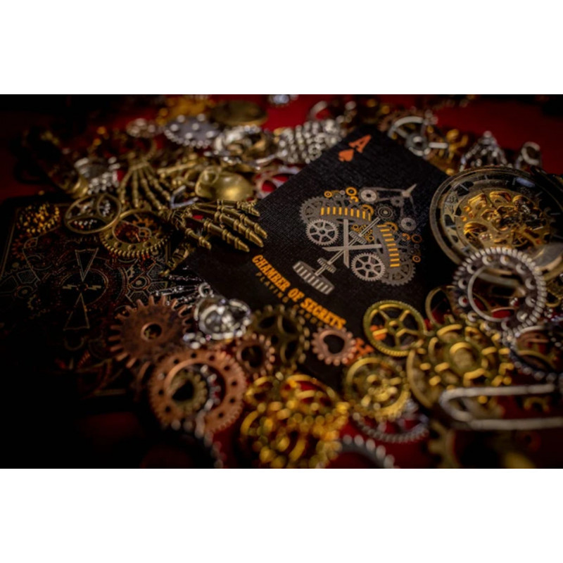 Dünya Sihir Şampiyonası ödüllü sihirbaz Matthew Wright tarafından tasarlanan bu deste, onun İspanya'daki ünlü sihir tiyatrosu "Chamber of Secrets"in steampunk temalı, gizemli ve büyüleyici atmosferinden ilham alıyor. Deste, tiyatronun estetiğini ve kalitesini yansıtarak, her bir kartta endüstriyel zarafet ile sihir sanatını bir araya getirir. Bu koleksiyon, sadece bir oyun kartı destesi değil, aynı zamanda Viktorya dönemi makinelerinin karmaşık güzelliğini ve illüzyonun inceliklerini takdir edenler için tasarlanmış, özenle işlenmiş bir sanat eseridir.