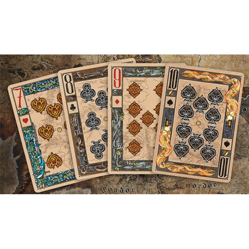 Üretici: Kings Wild Project Tasarımcı: Jackson Robinson Lisans: Middle-earth Enterprises Malzeme: Yüksek kaliteli kart stoğu Kart sayısı (ve içeriği): 52 standart oyun kartı + Jokerler Boyut (yaklaşık mm): 63 x 88 mm (Standart Poker boyutu) Renk: Kahverengi, Altın, Siyah Ek Özellikler: Kartlarda ve kutuda altın folyo detayları, kitap gibi yandan açılan özel kutu ("side-load book box")